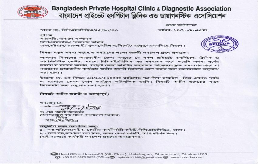 বরিশাল বিভাগের নতুন সদস্য সংগ্রহ ও নবায়নের লক্ষ্যে জরুরী পদক্ষেপ সংক্রান্ত নোটিশ |